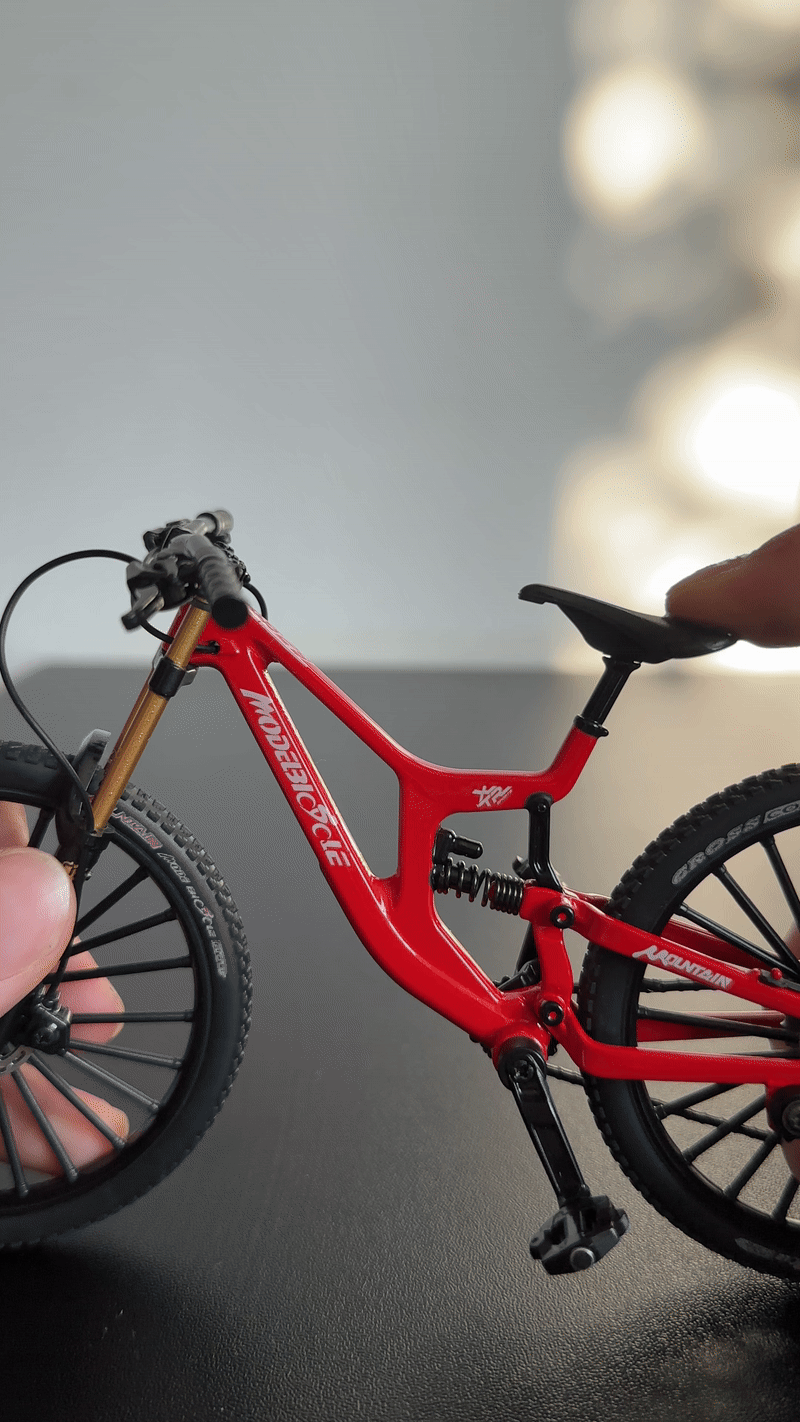 Mini MTB to realistyczny, miniaturowy rower górski z prawdziwym zawieszeniem i ruchomym napędem. Idealny dla fanów MTB jako gadżet, dekoracja lub prezent. Wygląda jak prawdziwy rower – tylko w wersji do ręki!